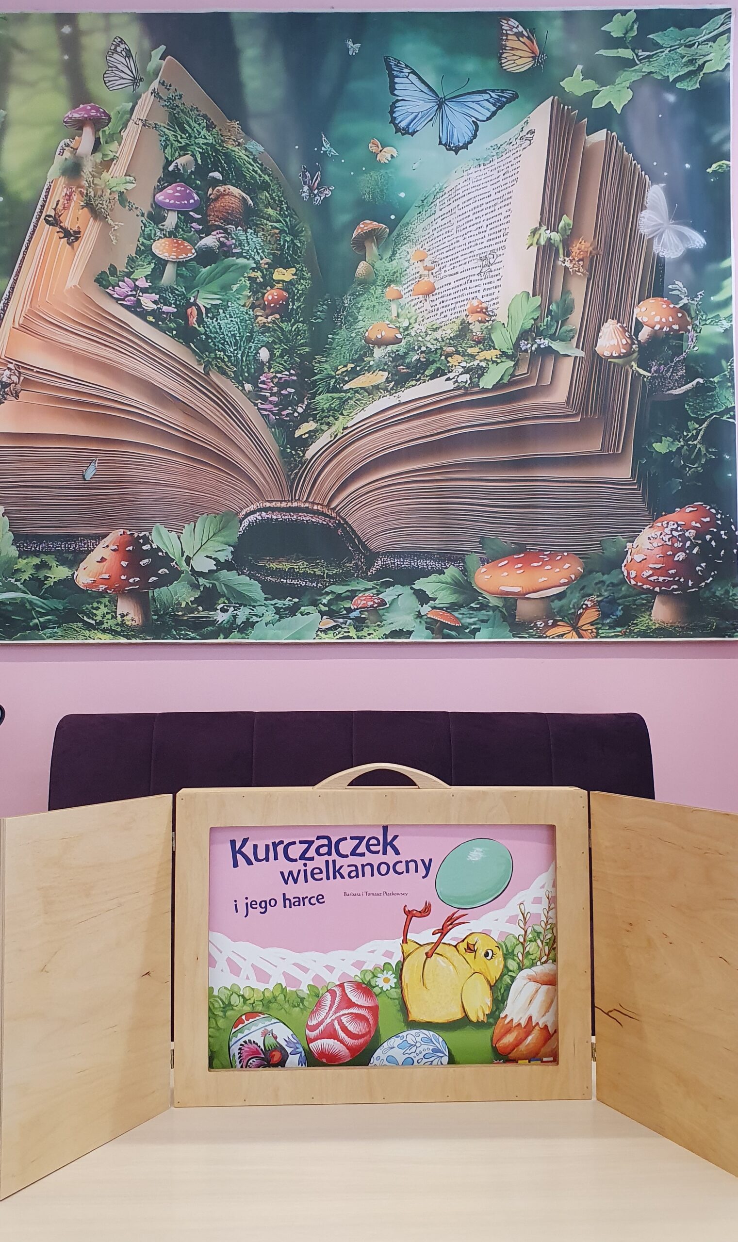 A ponieważ Wielkanoc tuż-tuż, przenieśliśmy się do świata opowieści i dzięki teatrzykowi kamishibai dzieci wysłuchały bajkę edukacyjną pt. „Kurczaczek wielkanocny i jego harce”. Było dużo śmiechu, ciekawości i wielkich oczu wpatrzonych w ilustracje .