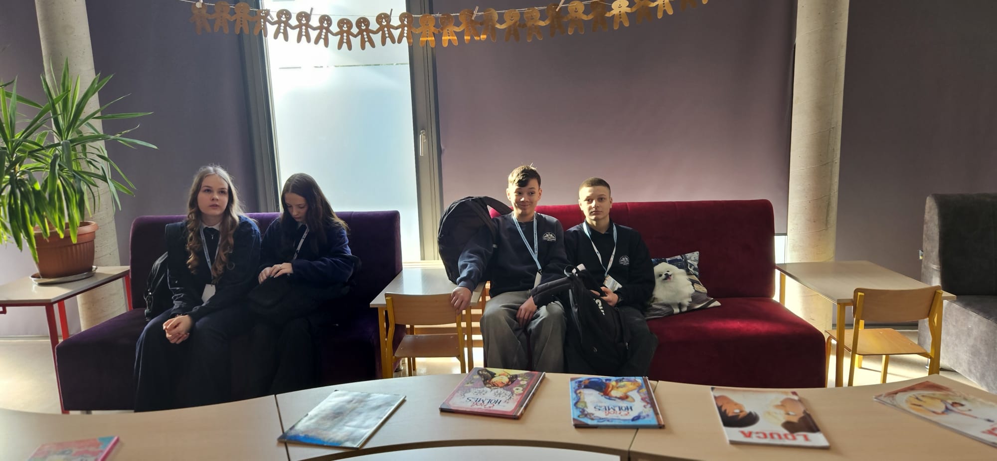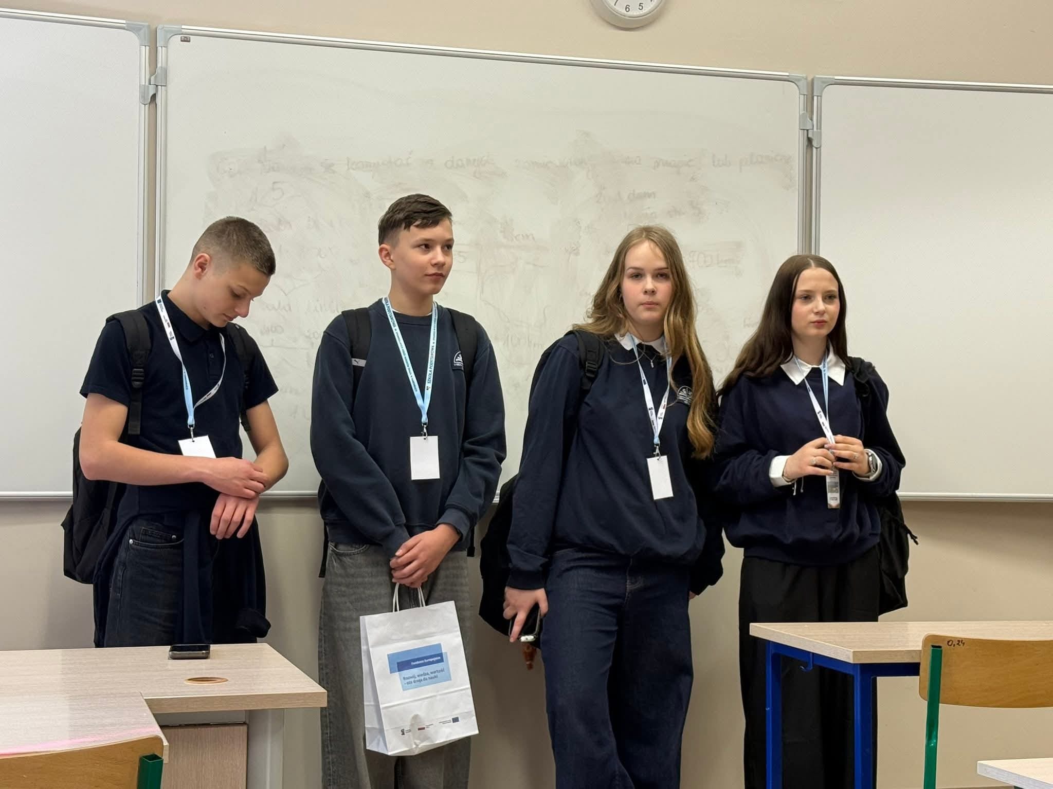 Szczególną rolę podczas wizyty odegrali uczniowie klasy 6b – Ewa Szyszka, Zuzanna Krzyśko oraz Colin Grzybowski, którzy pełnili funkcję opiekunów i przewodników, oprowadzając gości po szkole i wspierając ich w codziennym funkcjonowaniu.